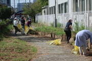 PTAサポート活動の1コマです。10月2日、運動会の練習を行っている子どもたちに負けないよう、「ふれあい小径」の除草作業を行いました。