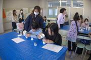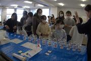親子で「スノードーム」「スライム」づくりを行いました。予定より多くの親子での参加により、急きょ、時間を3つに分けて行いました。